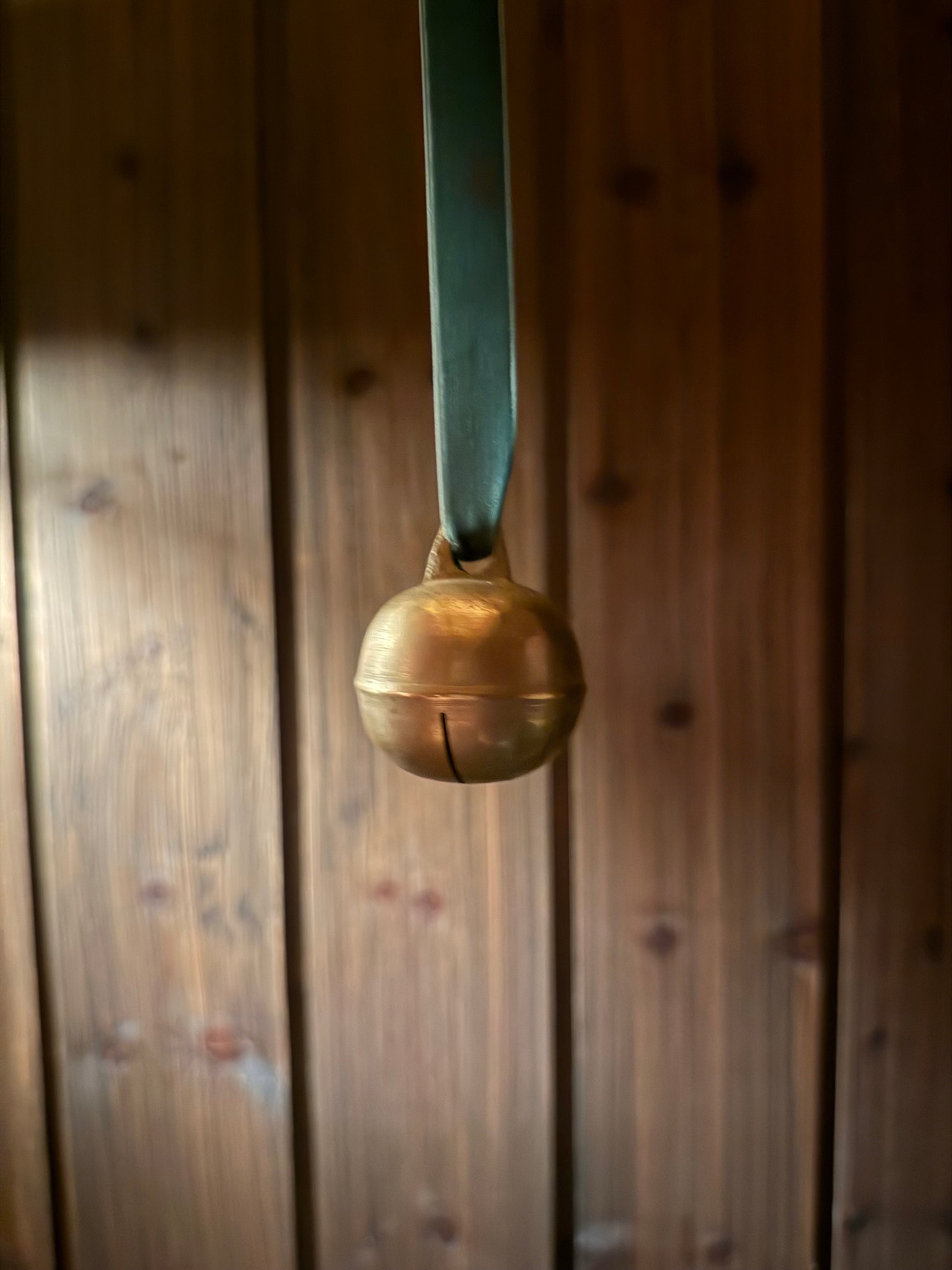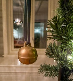 Pynt til jul med en vakker dombjelle og et grønt fløyelsbånd. Dombjellen er i messing. Dette er en dombjelle som måler 5 cm i diameter. Med grønt fløyelsbånd kan dombjellen henge i vindu eller være dekor på et fat. Det grønne fløyelsbåndet gjør dombjellen perfekt å pynte med om du ønsker en tradisjonell jul.