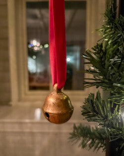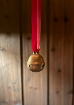 Pynt til jul med en vakker dombjelle med dekorativt fløyelsbånd. Pynter opp på juletre, i vindu eller som blikkfanget i en krans. Bjellen er gammel, i messing og 4,5 cm i diameter. Mange forbinder julen med lyden av dombjelle. En behagelig dempet og matt klang. Dombjeller er tradisjonelt brukt til hester på sledekjøring til jul. For å skape den gode atmosfæren fra en sledetur.