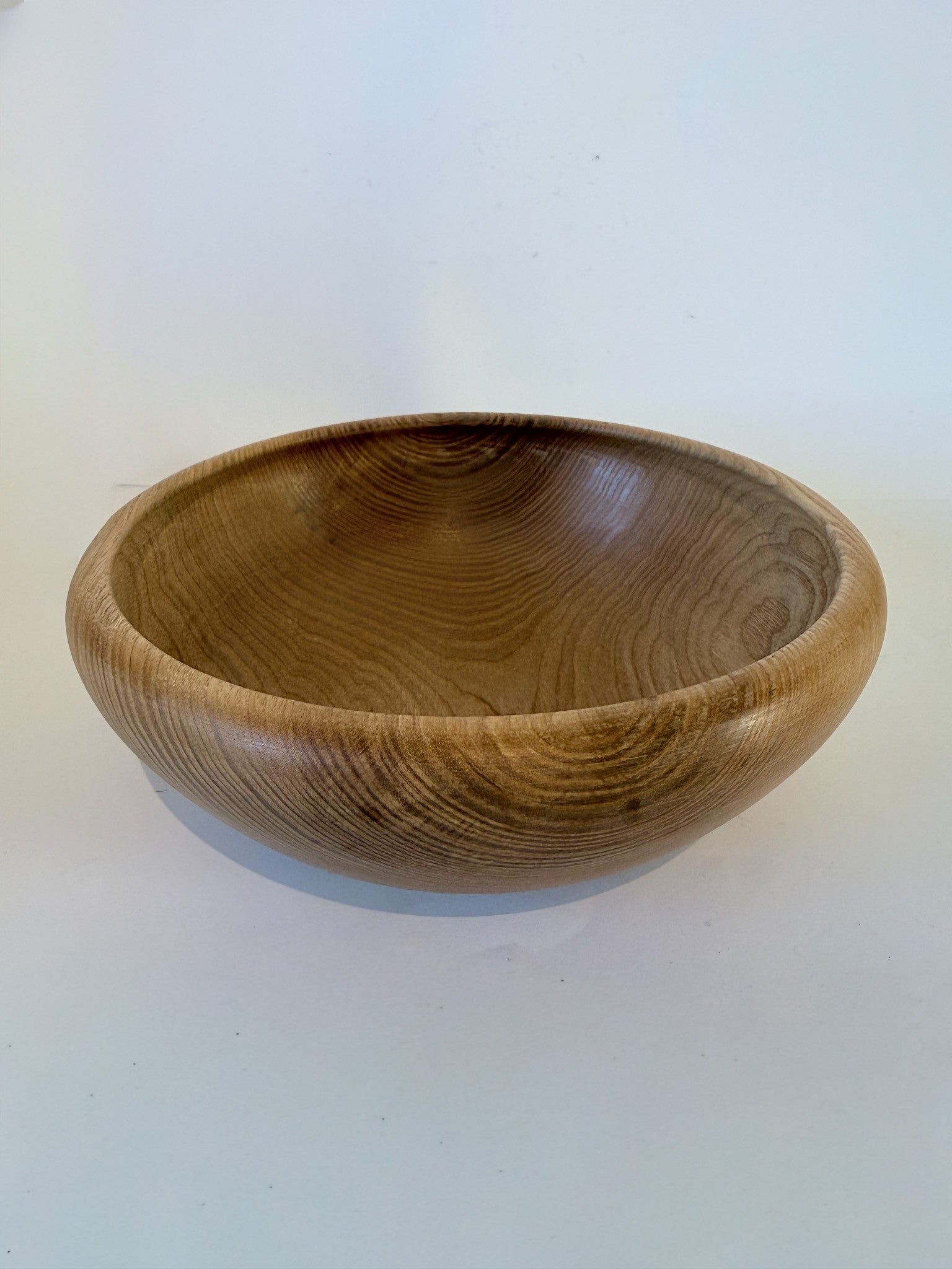 Vakker håndlaget skål i Ask. Dette er en trebolle som passer perfekt til servering av frukt, twist eller annet. En skål i tre passer også fint som et dekorelement. Trekålen er håndlaget av våre trekunstner fra Indre Østfold. Han har en unik interesse for unike tresorter, også frukttrær. Bollen er 20 cm i diameter.