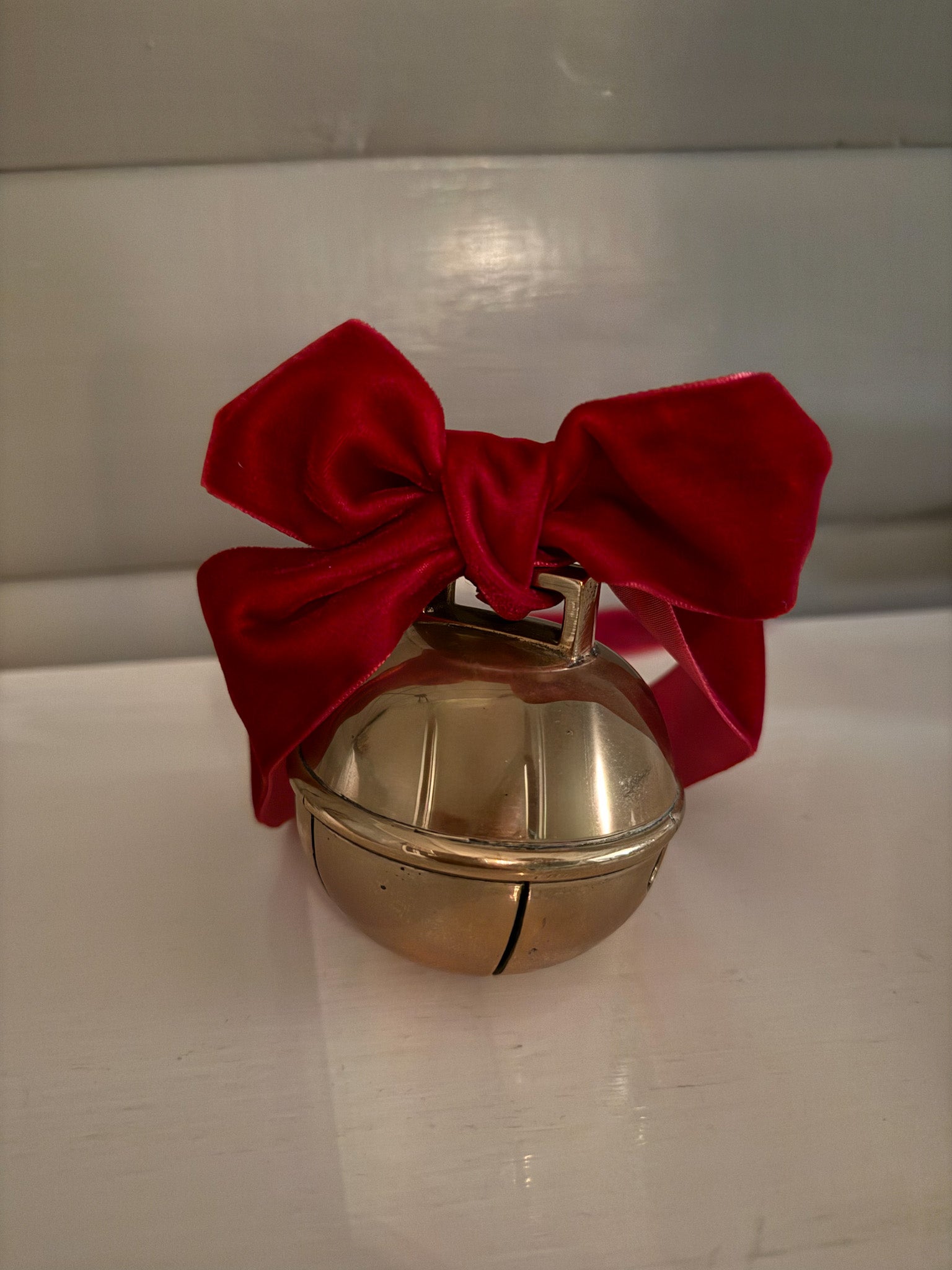 Pynt til jul med en vakker og blank dombjelle og et bredt rødt fløyelsbånd. Dombjellen er i blank messing. Dette er en stor dombjelle som måler hele 8 cm i diameter. Med rødt fløyelsbånd kan dombjellen henge i vindu eller være dekor på et fat. Det røde fløyelsbåndet gjør dombjellen perfekt å pynte med om du ønsker en tradisjonell jul.