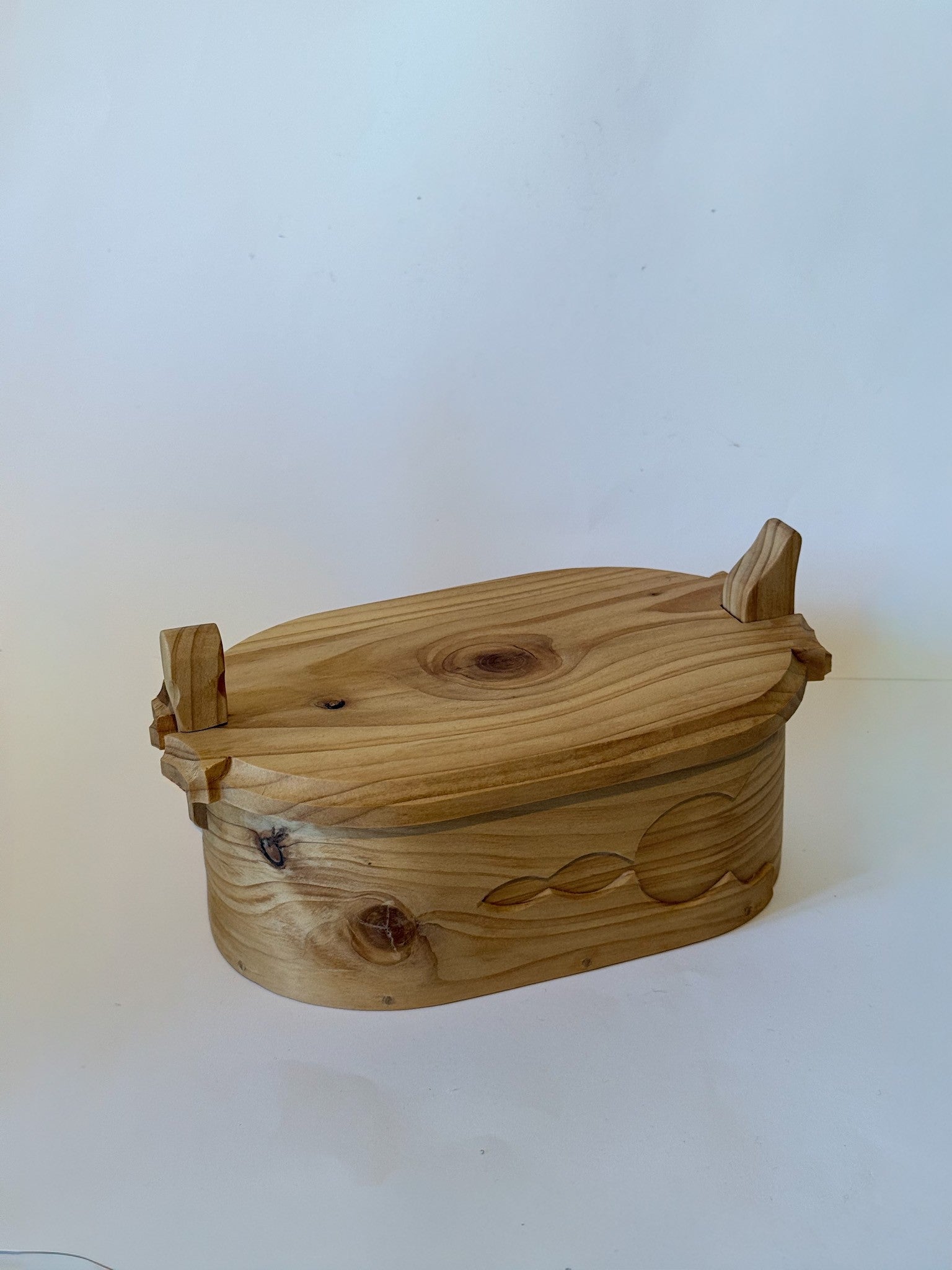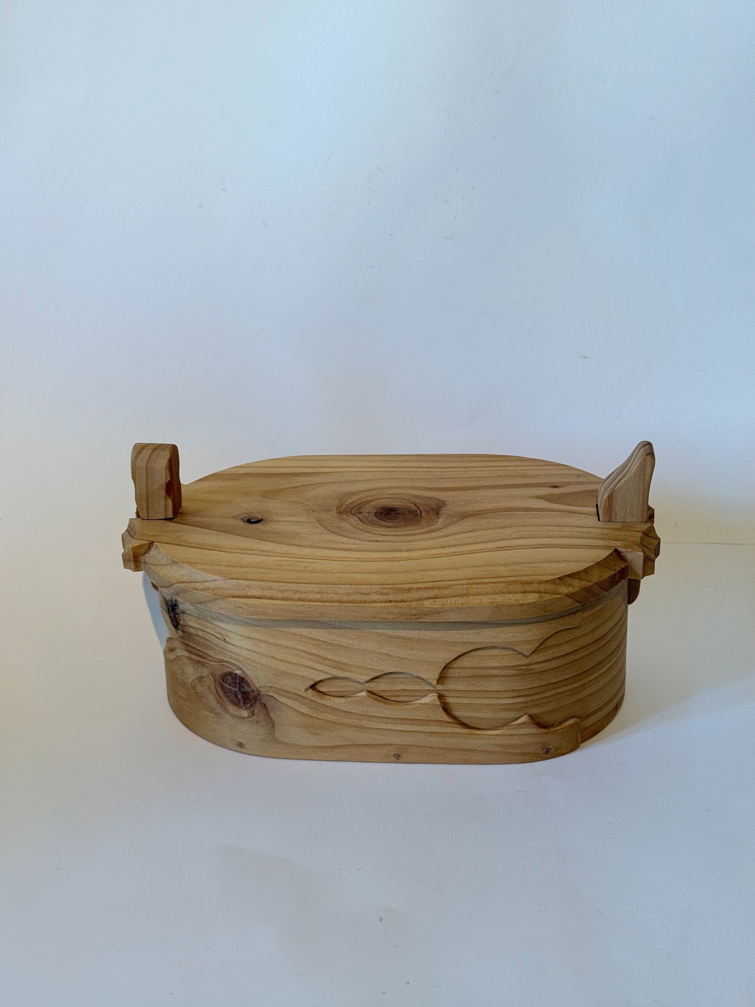 Vakker håndlaget tretine i Hemlokk gran. Dette er en tine i tre med unike detaljer på selve boksen. Tretinen har et avtagbart lokk, laget og signert vår trekunstner i 2009. Tretinen er 19 cm lang, bredden er 12 cm og høyden 10 cm. Laup i tre er et annet ord for tine i tre, og ble brukt for oppbevaring av matvarer, spesielt smør. Denne vakre tretinen passer perfekt til å oppbevare bunadsmykker, knapper eller som et vakkert interiør-element.