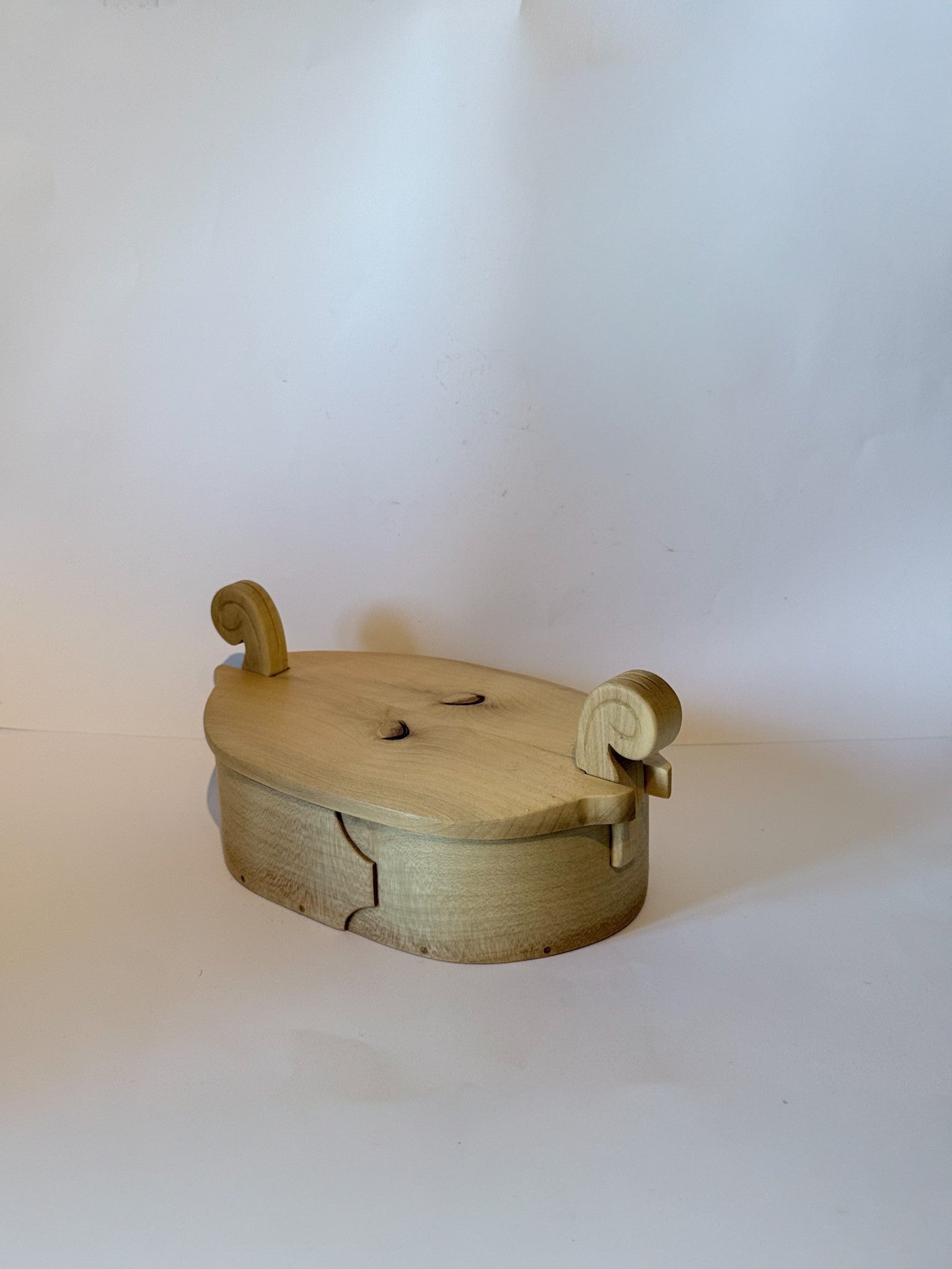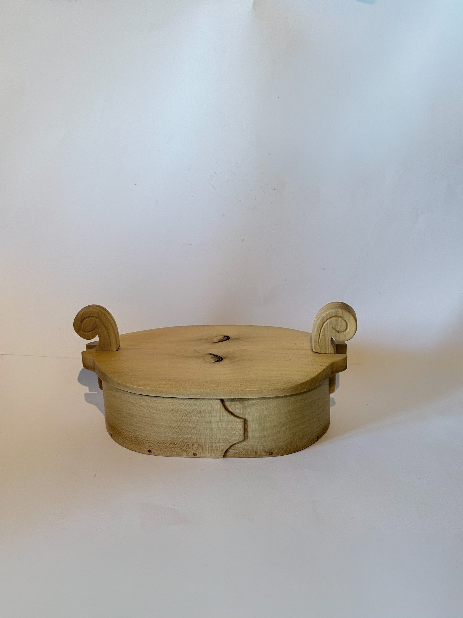 Vakker håndlaget tretine i Kristorn. Dette er en tine i tre med unike detaljer på selve boksen. Tretinen har et avtagbart lokk, laget og signert vår trekunstner i 2006. Tretinen er 19 cm lang, bredden er 12 cm og høyden 9 cm. Laup i tre er et annet ord for tine i tre, og ble brukt for oppbevaring av matvarer, spesielt smør. Denne vakre tretinen passer perfekt til å oppbevare bunadsmykker, knapper eller som et vakkert interiør-element.