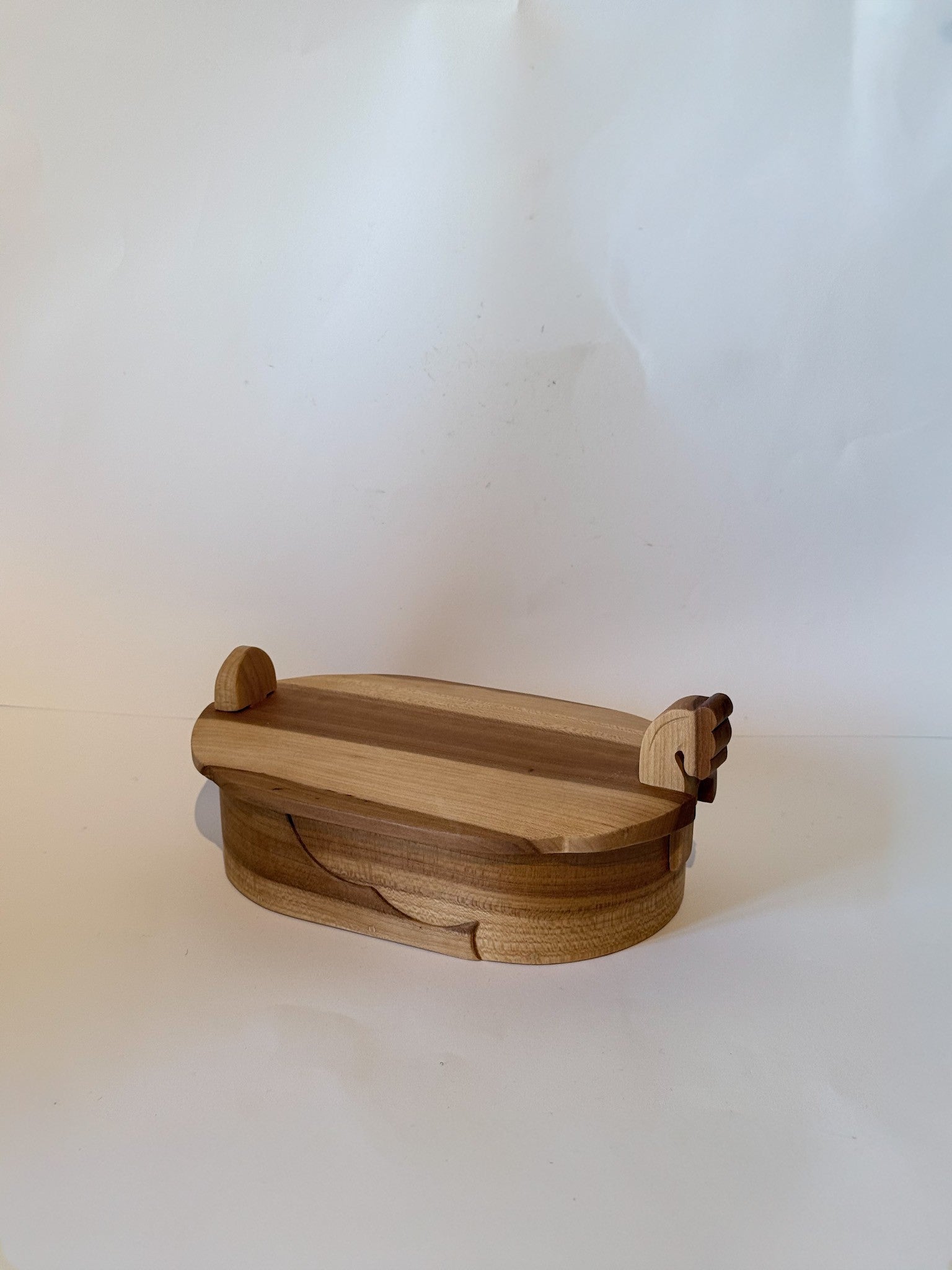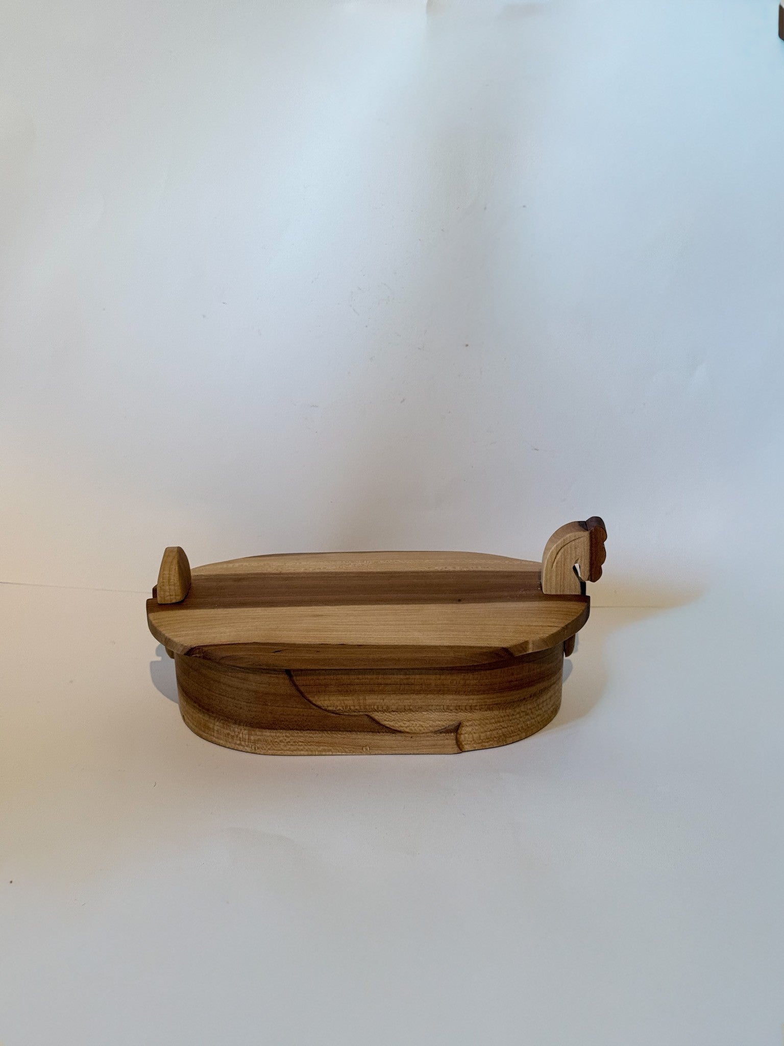 Vakker håndlaget tretine i plommetre Opal. Dette er en tine i tre med unike detaljer på selve boksen. Tretinen har et avtagbart lokk, laget og signert vår trekunstner i 2009. Tretinen er 19 cm lang, bredden er 12 cm og høyden 9 cm. Laup i tre er et annet ord for tine i tre, og ble brukt for oppbevaring av matvarer, spesielt smør. Denne vakre tretinen passer perfekt til å oppbevare bunadsmykker, knapper eller som et vakkert interiør-element.