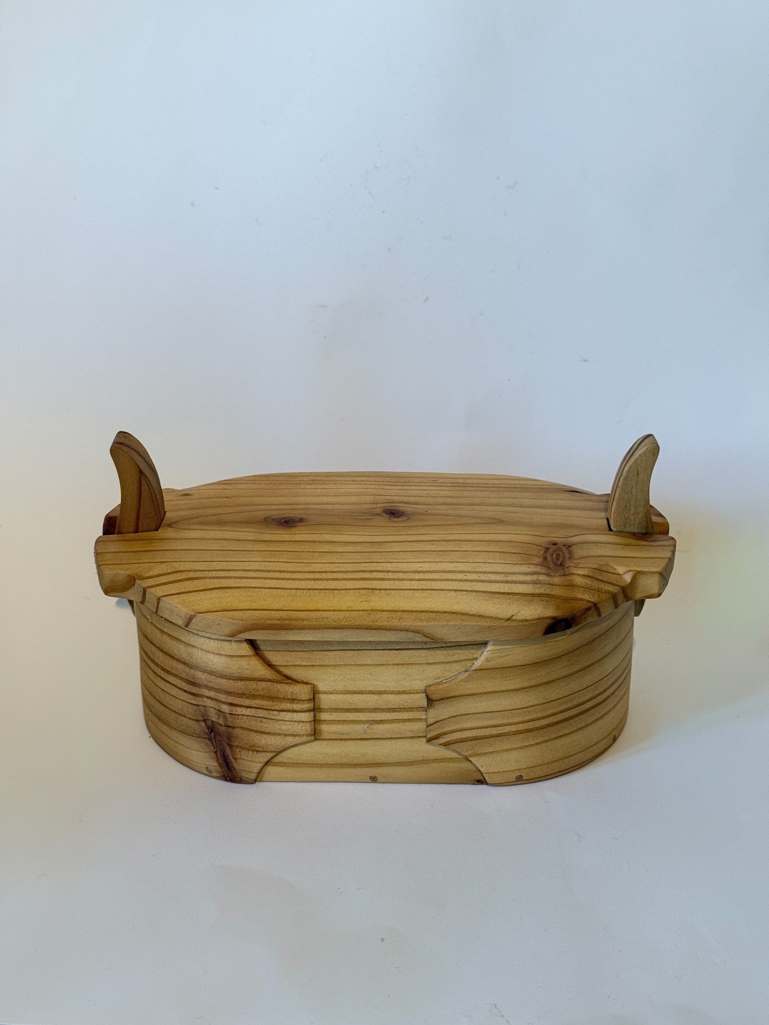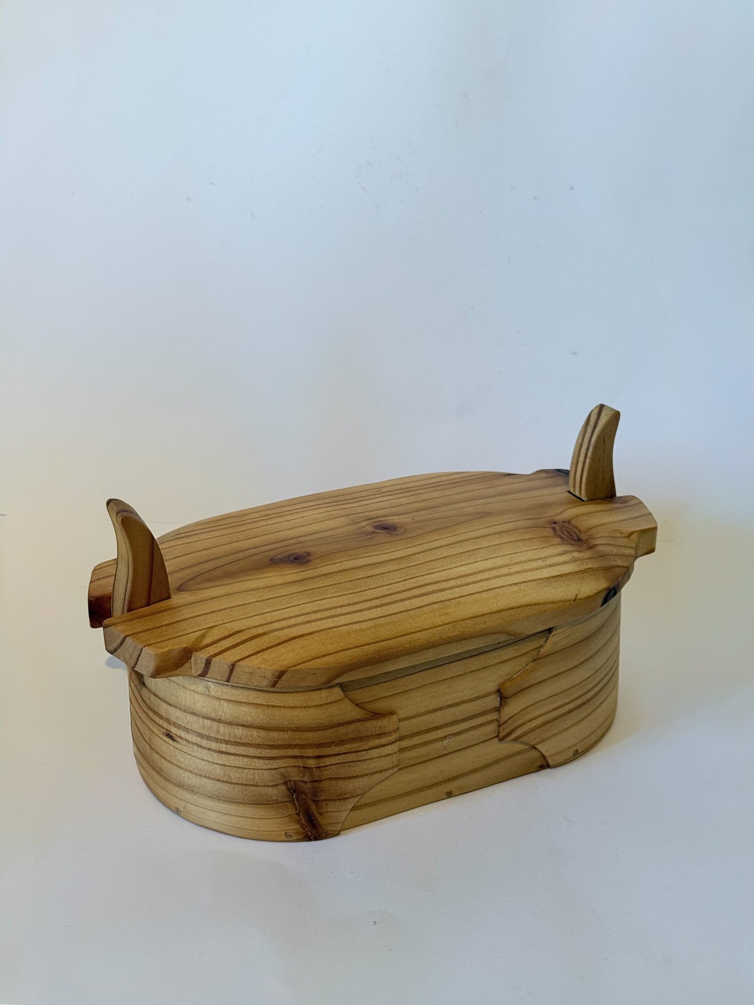 Vakker håndlaget tretine i norsk Lerk Dette er en tine i tre med unike detaljer på selve boksen. Tretinen har et avtagbart lokk, laget og signert vår trekunstner i 2007. Tretinen er 20 cm lang, bredden er 12 cm og høyden 9 cm. Laup i tre er et annet ord for tine i tre, og ble brukt for oppbevaring av matvarer, spesielt smør. Denne vakre tretinen passer perfekt til å oppbevare bunadsmykker, knapper eller som et vakkert interiør-element.